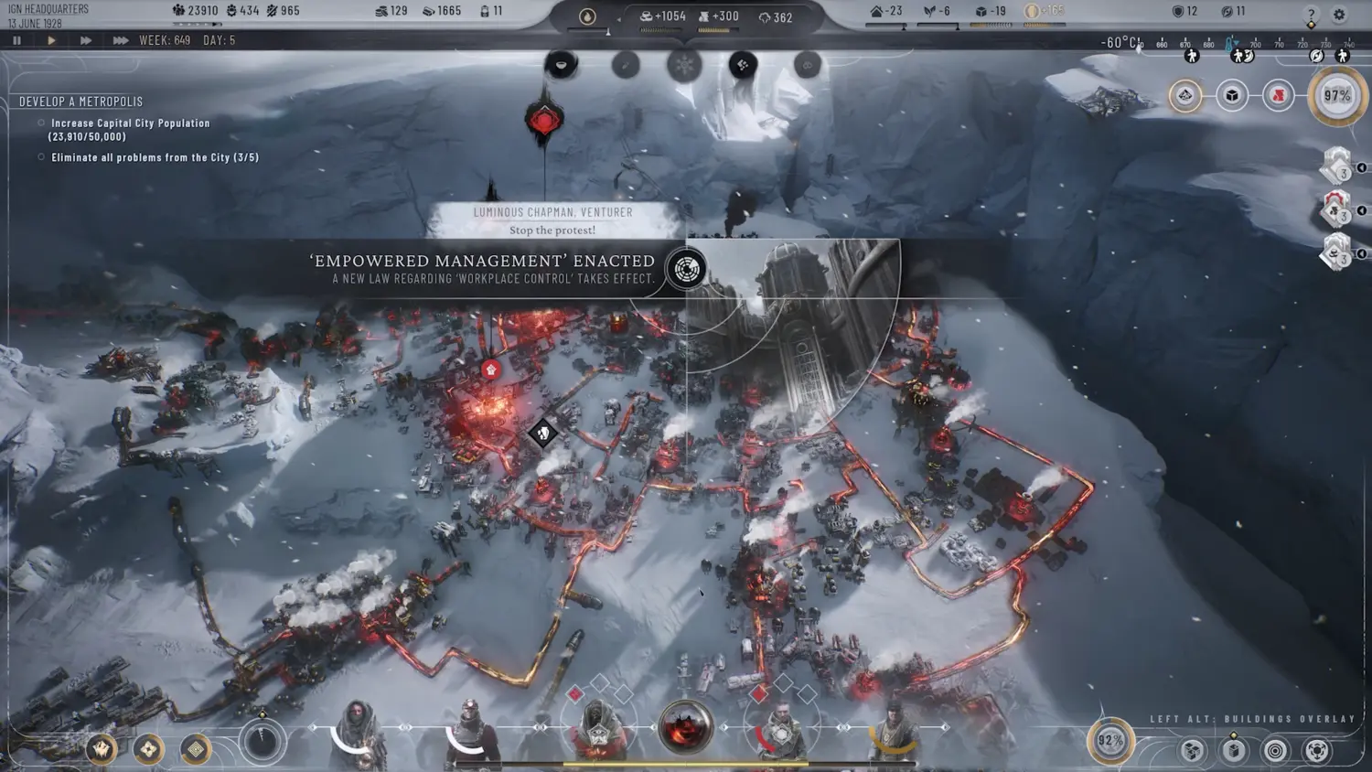 Frostpunk 2 არის ქალაქის მშენებლობის გადარჩენის თამაში, რომლის მოქმედებაც ორიგინალის მოვლენებიდან 30 წლის შემდეგ ვითარდება, სამყაროში, რომელიც ჯერ კიდევ მარადიულ ზამთარია. თამაში ნახშირზე მომუშავე ორთქლზე მომუშავე ინდუსტრიიდან ნავთობზე დაფუძნებულ ინდუსტრიაზე გადადის, რაც კაცობრიობის გადარჩენისთვის ბრძოლაში ახალ ერას აღნიშნავს. თქვენ ხელმძღვანელობთ ნიუ-ლონდონის ქალაქს, მართავთ რესურსებს, აფართოებთ ინფრასტრუქტურას და ნავიგაციას უკეთებთ ფრაქციებს შორის რთულ პოლიტიკურ დინამიკაში, რათა შეინარჩუნოთ თქვენი საზოგადოება სტაბილური.